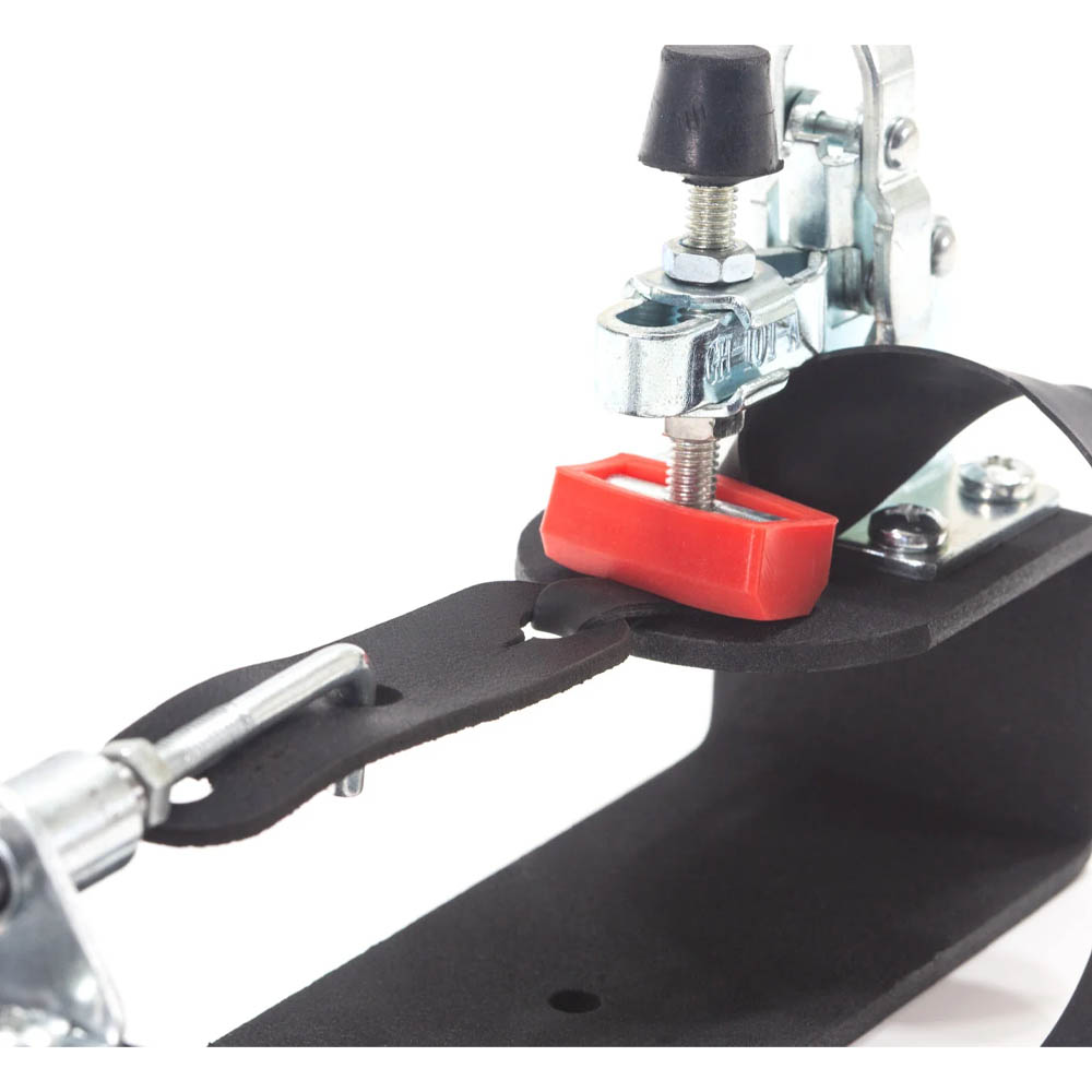 The clamp is a soft material that will not damage your bands and is easily adjustable to provide just the right tension.
